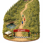 Die Strecke — zum Beispiel ein 10-Kilometer-Rundkurs durch Wiesen und Wälder — führt zurück zum Ausgangspunkt. Gemessen wird die Gesamtzeit, entweder Nettozeit (ab dem Moment, in dem die Startlinie überquert wird) oder Bruttozeit (mit einem festen, vorgegebenen Startzeitpunkt).
